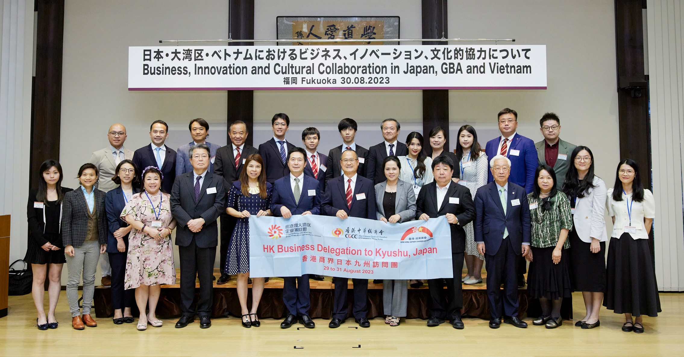 Chiều cùng ngày, đoàn đại biểu Hồng Kông, Hội Hữu nghị Nhật Bản – Hồng Kông tại Kyushu, Diễn đàn Kinh tế Kyushu và Đại học Kyushu đã cùng tổ chức hội thảo “Hợp tác Kinh doanh, Sáng tạo và Văn hóa tại Nhật Bản, Khu vực Vịnh lớn và Việt Nam” tại Trung tâm Văn hóa Jonathan KS Choi, thuộc Đại học Kyushu, Nhật Bản. Khoảng 100 doanh nhân, startup và đại diện các tổ chức văn hóa đến từ ba nơi đã tham gia hội thảo. Tại cuộc họp, Trung tâm Văn hóa Jonathan KS Choi tại Việt Nam và Bắc Kinh đã ký kết Thỏa thuận Hợp tác Văn hóa, nhằm tăng cường hợp tác với Trung tâm Văn hóa Jonathan KS Choi của Đại học Kyushu để thúc đẩy các dự án văn hóa. Ngoài ra, Nền tảng Sáng tạo Mở của Đại học Kyushu đã ký kết Thỏa thuận Hợp tác với Sunwah Innovations và sẽ phối hợp với các Trung tâm Đổi mới Sáng tạo Sunwah tại Thành phố Hồ Chí Minh, Việt Nam và Nansha, Quảng Châu, Trung Quốc. Ông Lu Guijun, Tổng Lãnh sự Trung Quốc tại Fukuoka, và bà Vũ Chi Mai, Tổng Lãnh sự Việt Nam tại Fukuoka, cũng đã tham dự sự kiện và phát biểu.