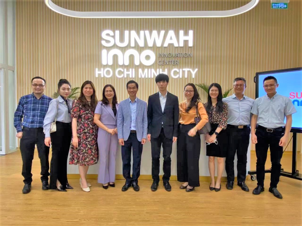 Đoàn đại biểu NIC chụp hình lưu niệm tại Trung tâm Đổi mới Sáng tạo Sunwah